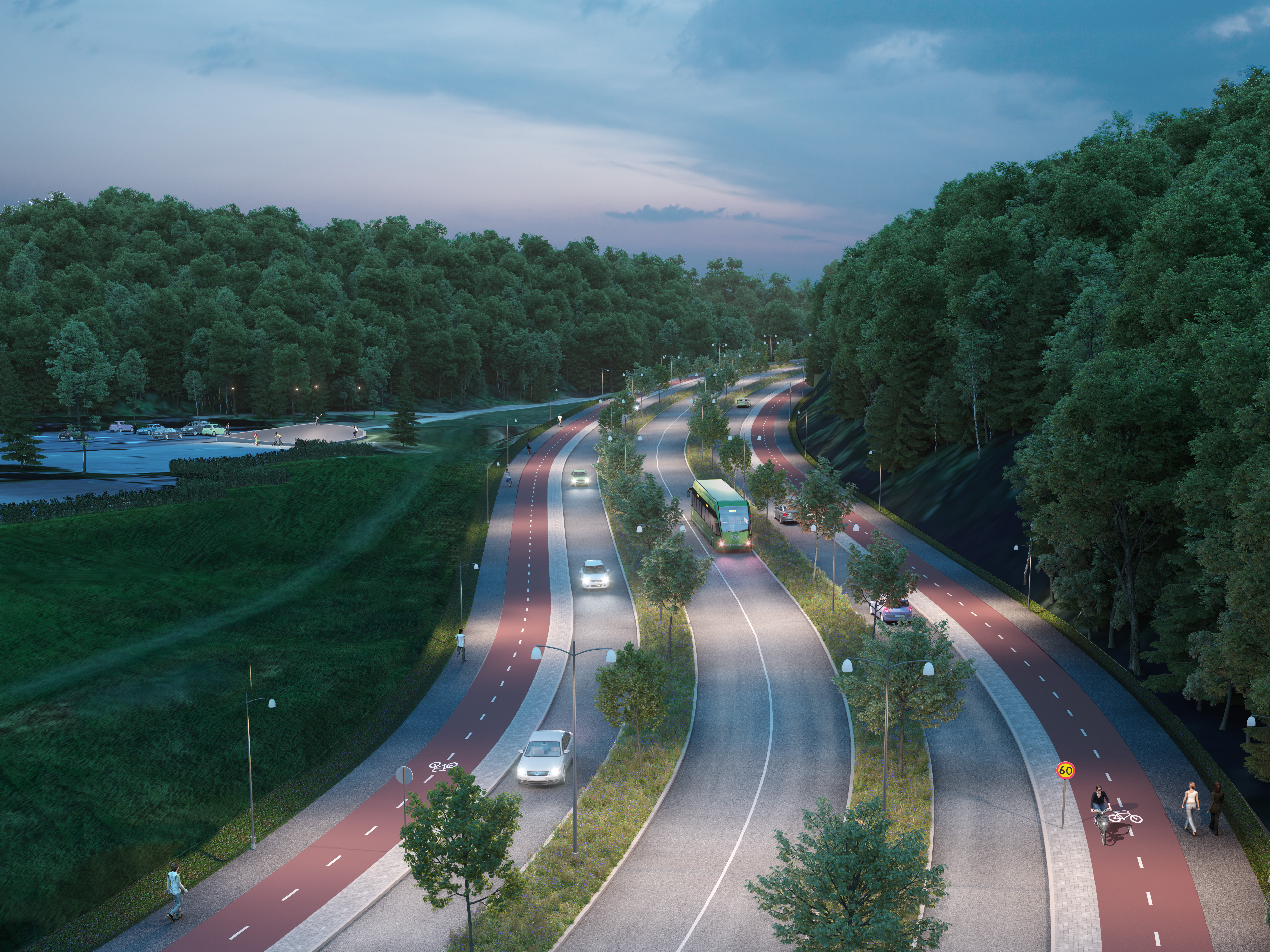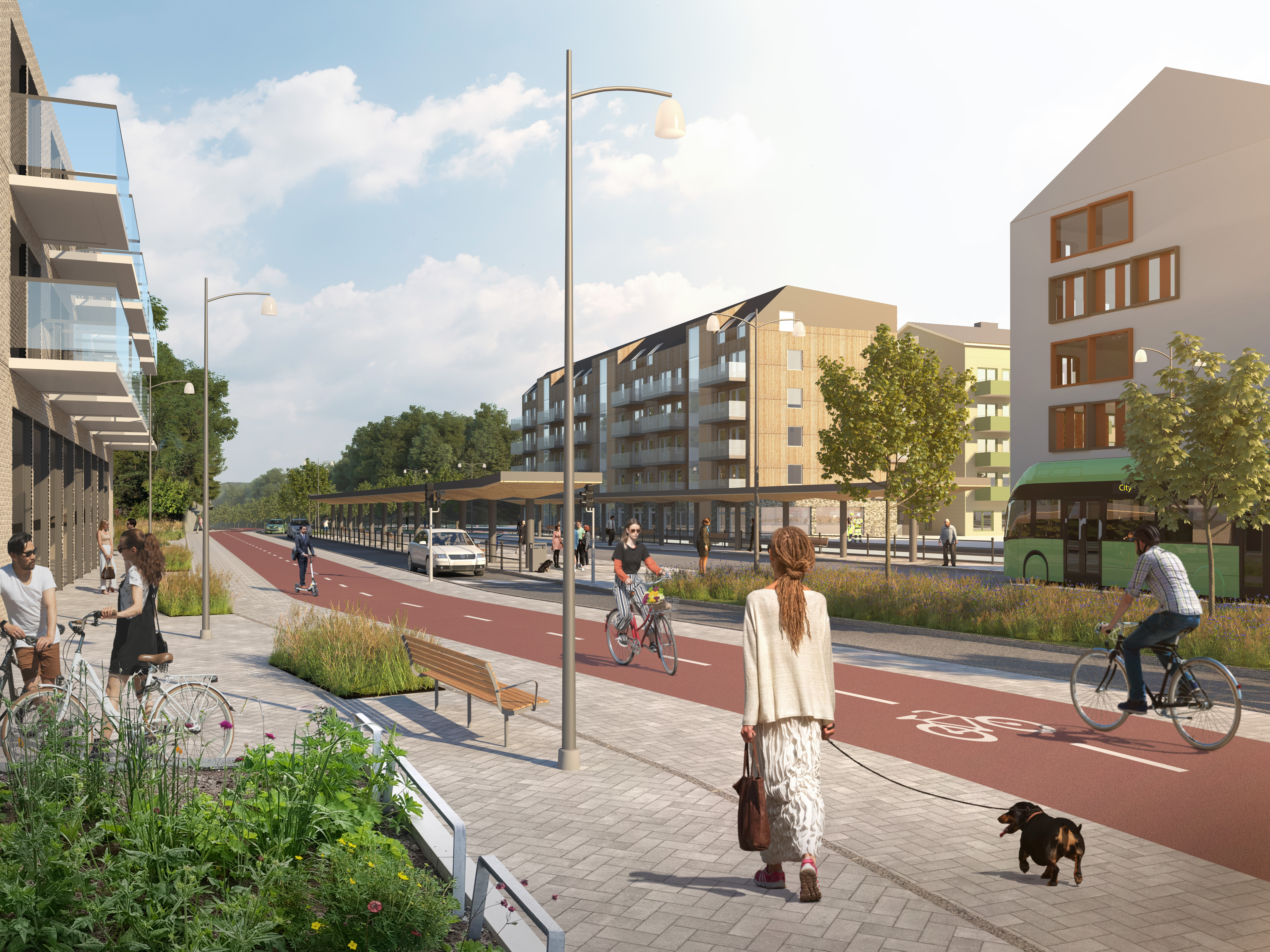 - Ny stadsmässig bebyggelse längs vägen – för att skapa en attraktiv miljö att bo och vistas i.